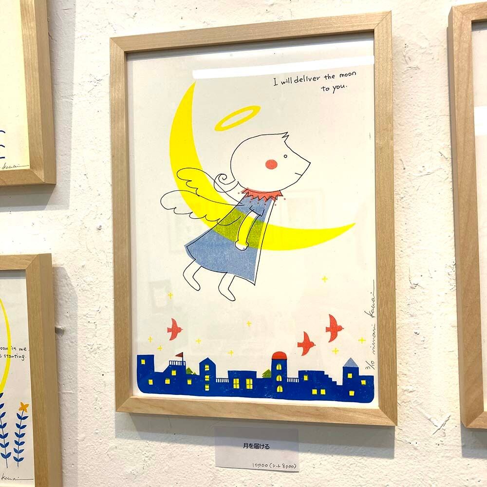 額込み 額サイズ 315×230mm イラストサイズ 298×210mm 天使が月を届けます。